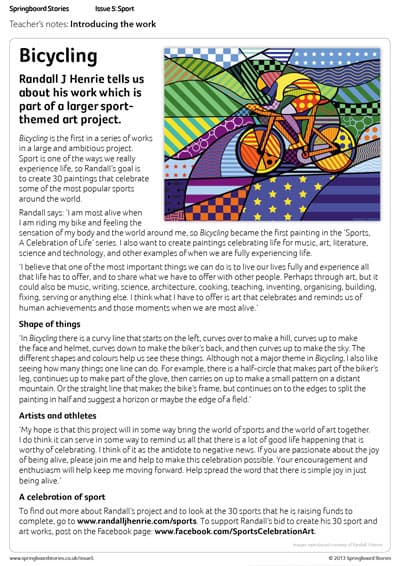 Have a go at creating your own big and bold sporty images in class. With ideas for discussing and responding to the work.